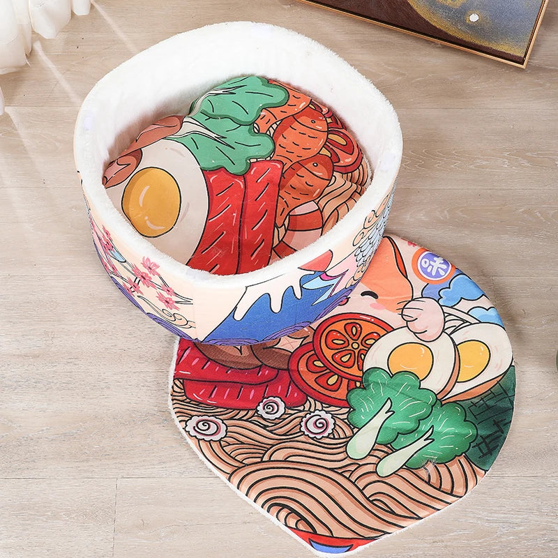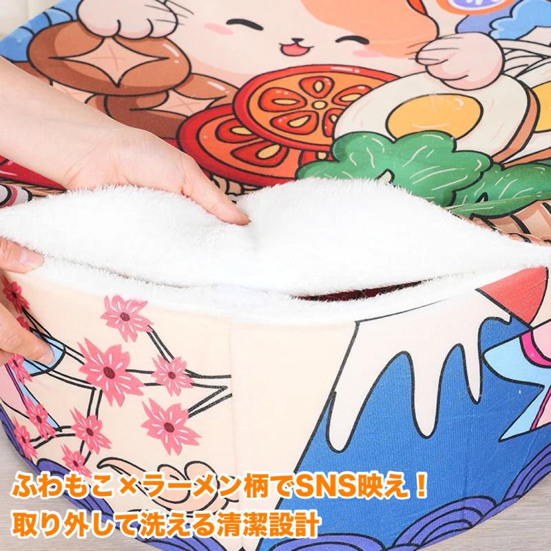 まるで人気ラーメンの世界に入り込んだような、遊び心満載のデザインが愛猫の好奇心をくすぐります。