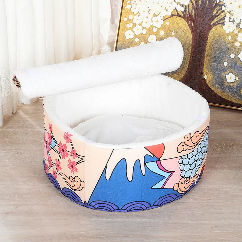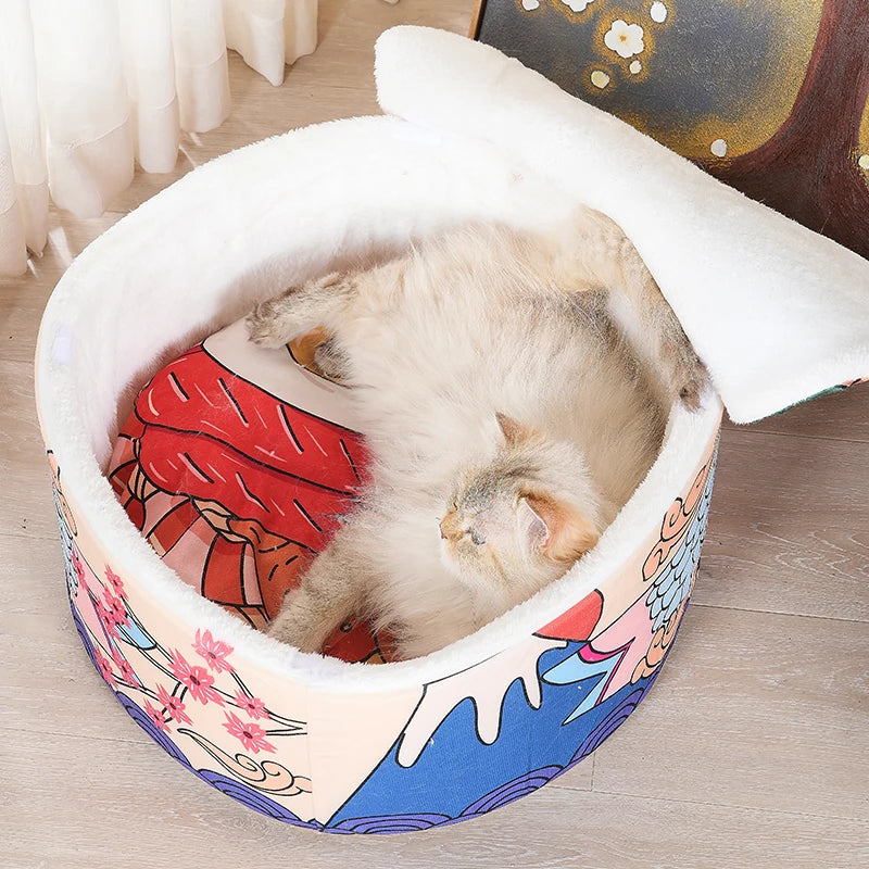 やわらかく包み込む形状は、丸まって眠る猫ちゃんにぴったり。寒い日はぬくぬく、夏も通気性◎。