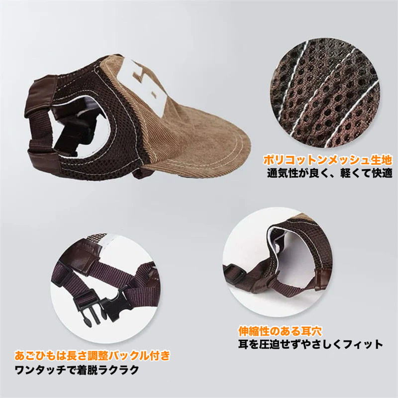日差しが強い日のお散歩も快適に。 - 耳穴付きデザインでストレスなし