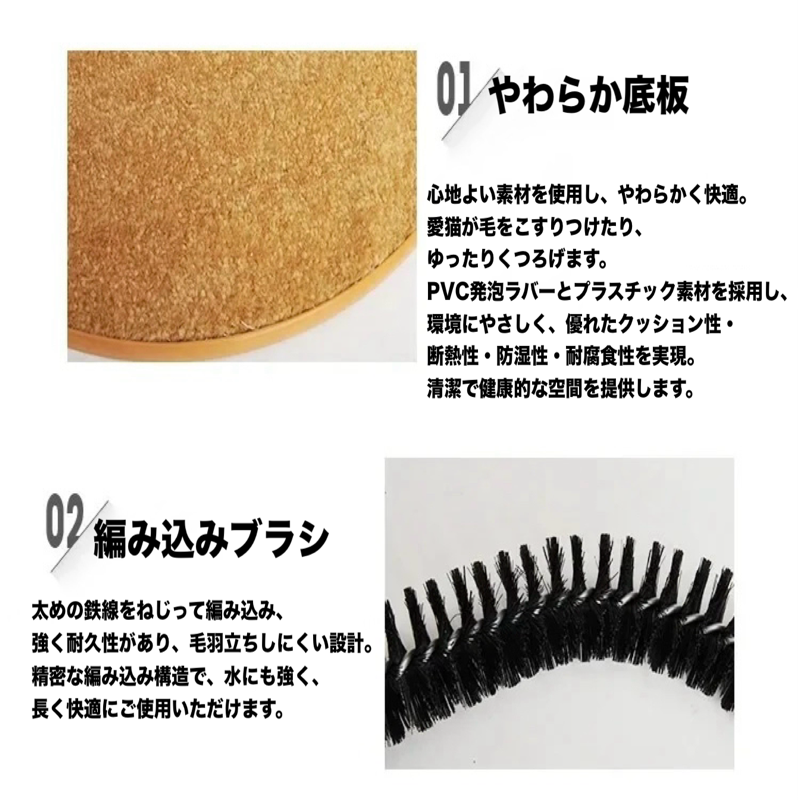 - 極上マッサージ効果:やわらかブラシが猫の全身を刺激