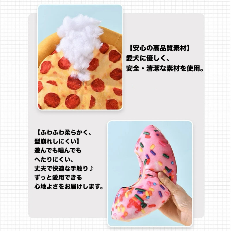 まるで本物みたいなピザやドーナツ、カフェドリンクがワンちゃんのお口にすっぽり!