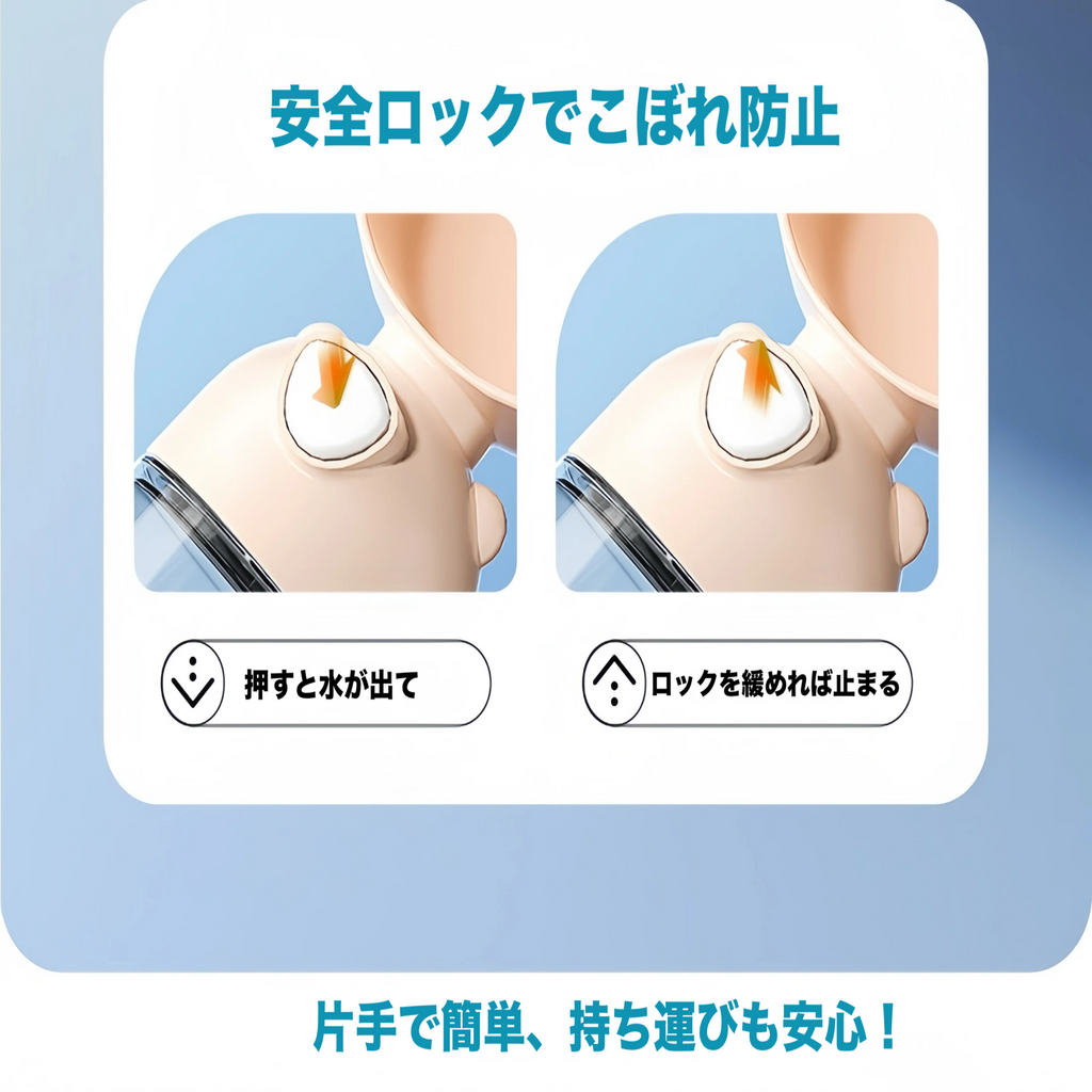 片手で水を出せて、飲み残しの水はボタンひとつで再吸収。