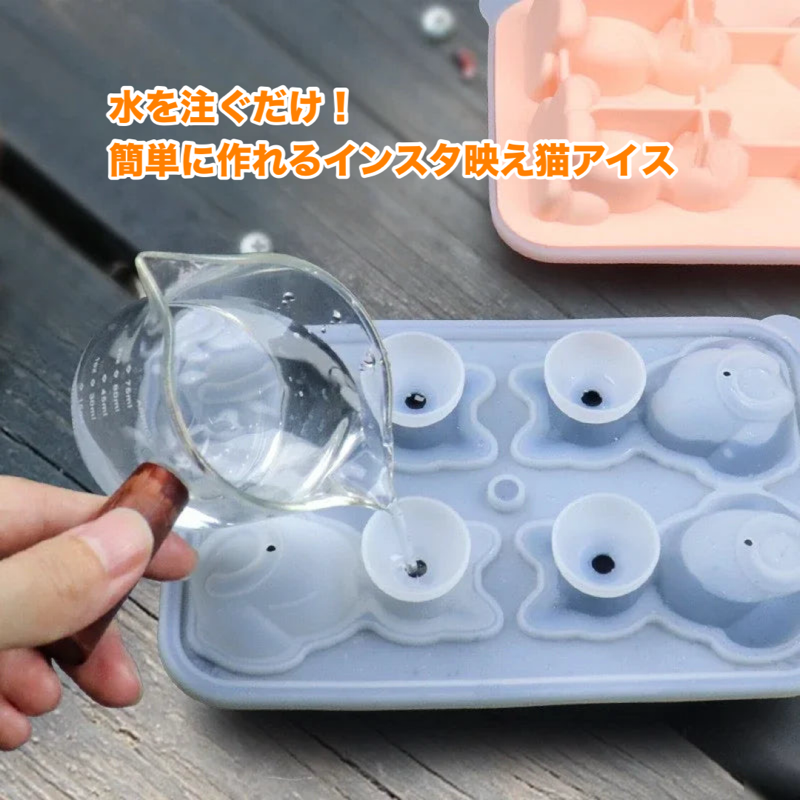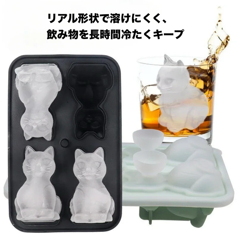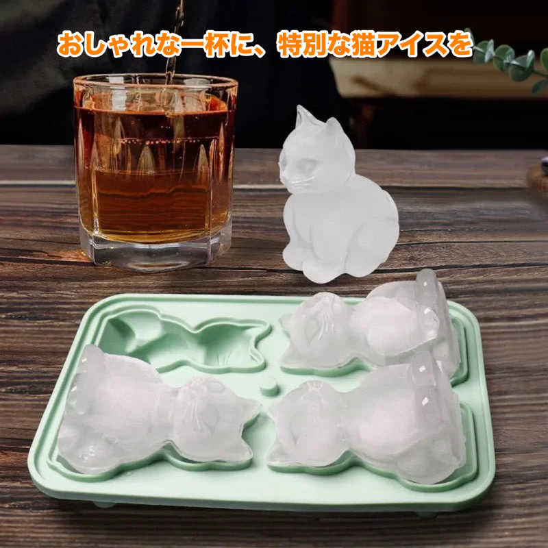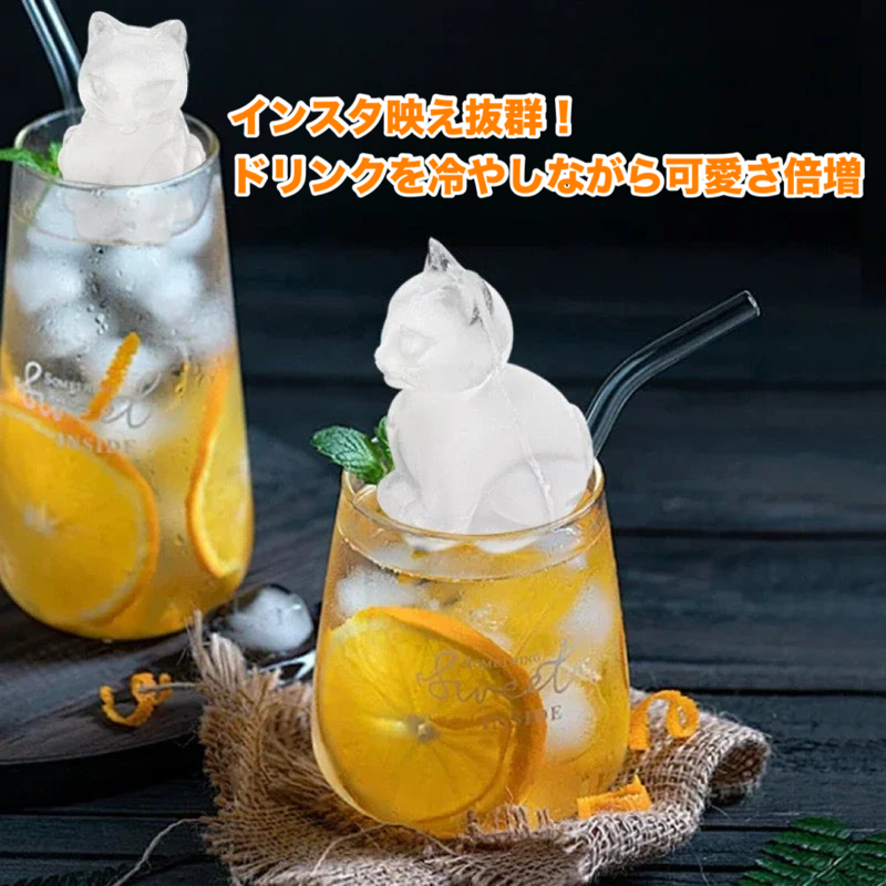 まるでグラスの中に小さな猫が座っているような、愛らしい氷が作れる猫型アイストレイ。