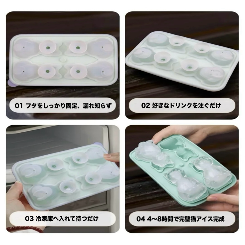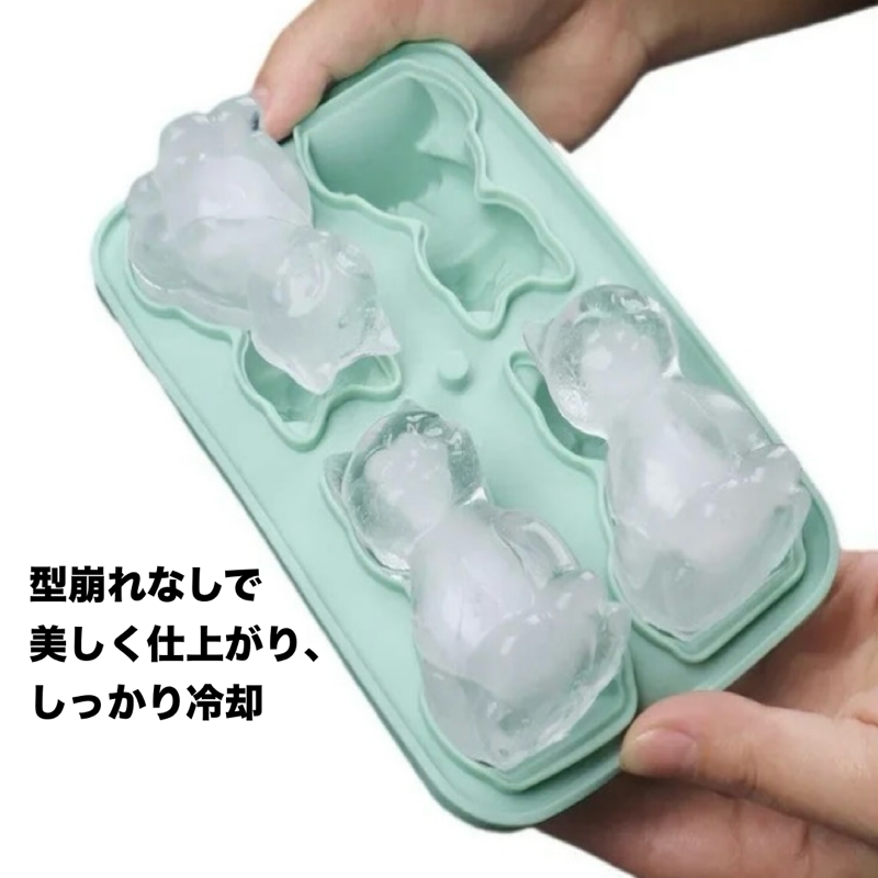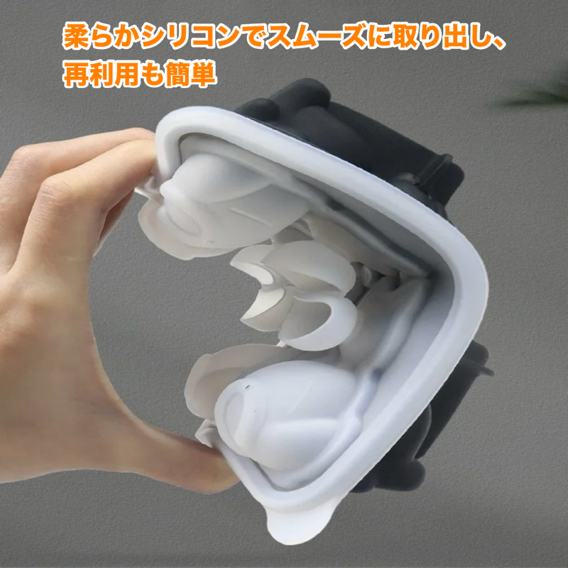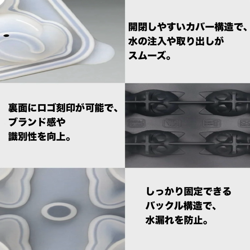 - 簡単4ステップ:水やジュースを入れて冷やすだけ。型からスッと外せる柔らか設計。