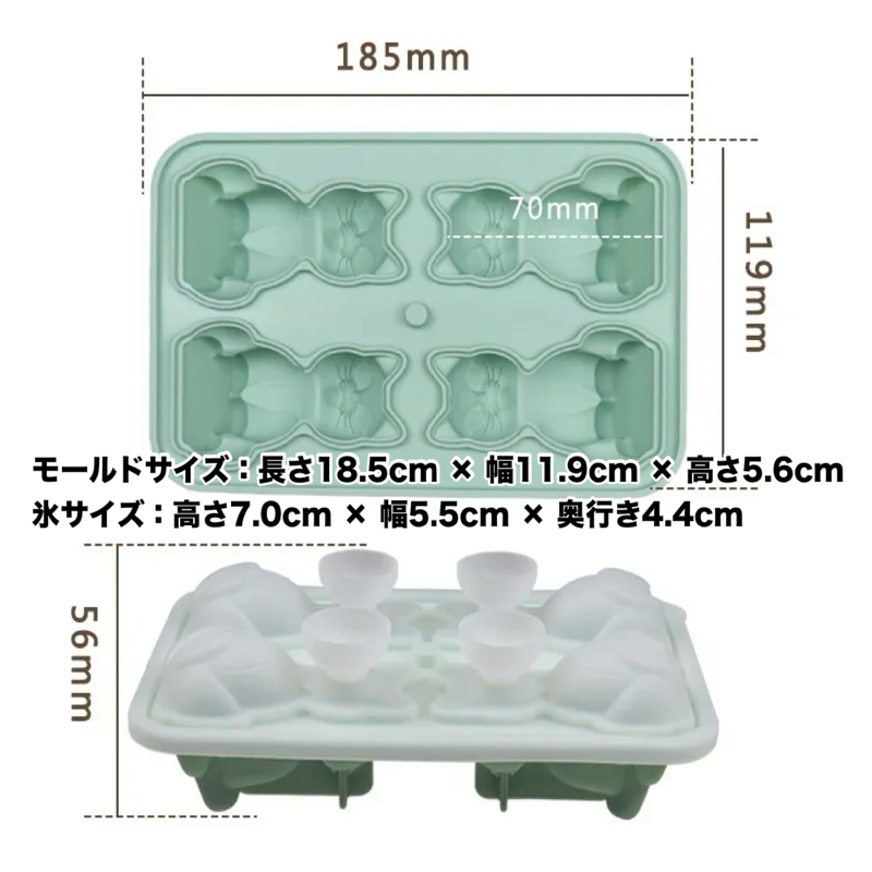 氷サイズ:高さ7.0cm × 幅5.5cm × 奥行き4.4cm