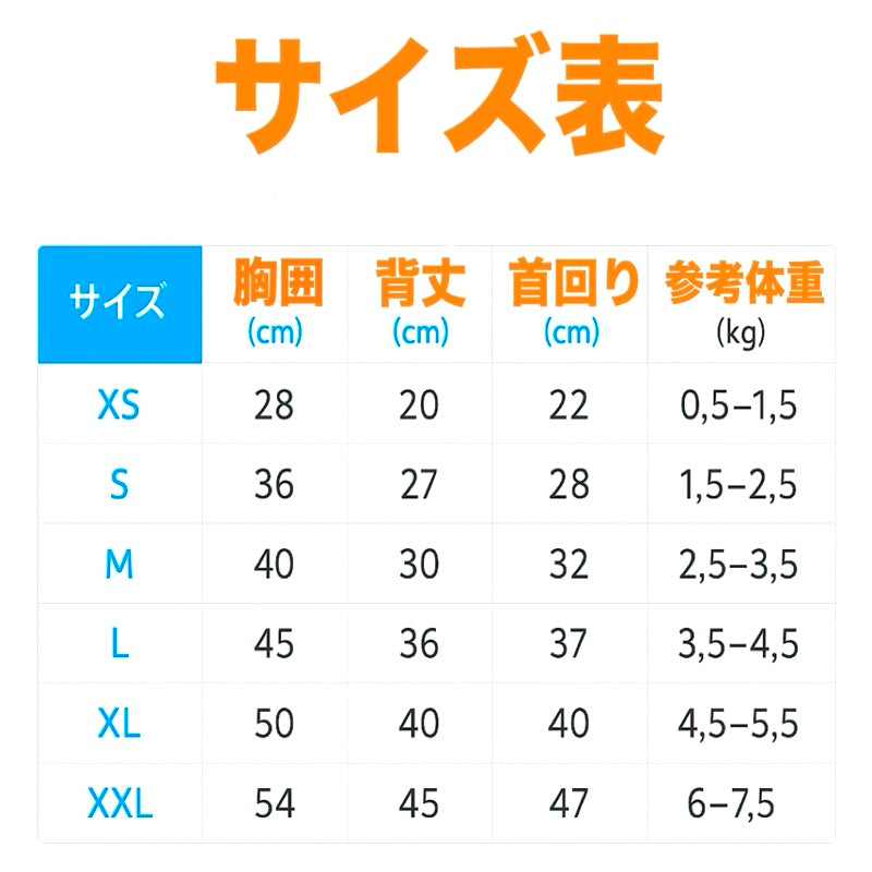- 胸囲(バスト):前足のすぐ後ろ、一番太い部分をぐるっと1周測ります。