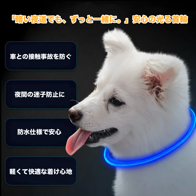 - 安心:暗闇でも360°発光で愛犬をしっかり守る